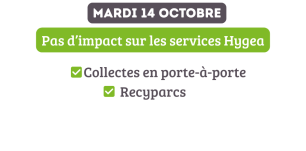 Hygea informe les citoyens que la grève nationale organisée ce lundi 14 octobre n’aura aucun impact sur ses services.