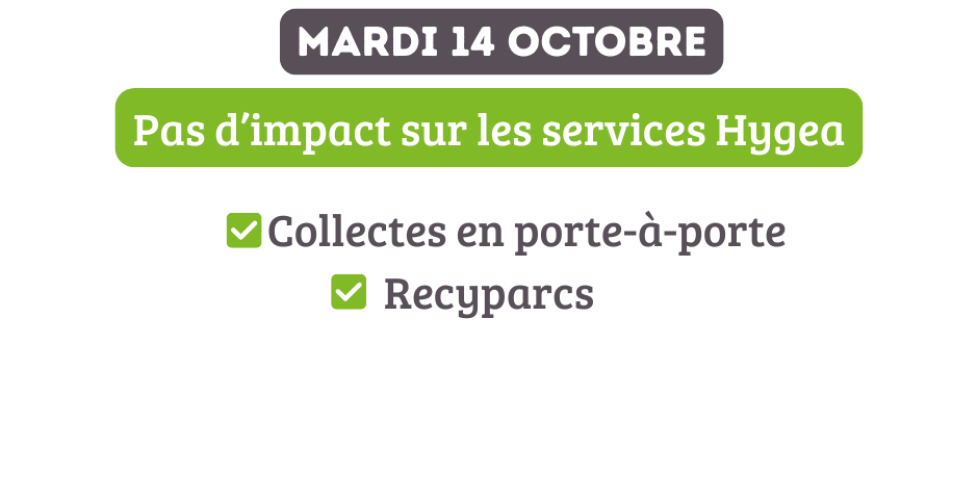 📢 Information aux citoyens – Grève du 14 octobre : aucun impact sur les services d’Hygea